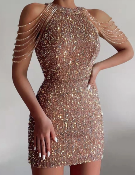 Be the first to review “Champagne Chain Sequin Dress” Cancel reply